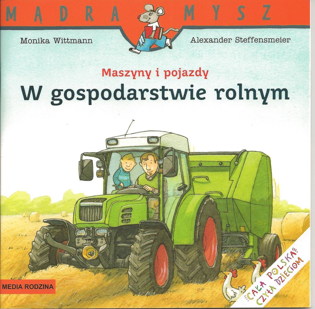 Maszyny i pojazdy : W gospodarstwie rolnym/ Monika Wittmann ; ilustrował Alexander Steffensmeier ; tłumaczył Bolesław Ludwiczak. - Wydanie 2025.1. - Poznań : Media Rodzina, copyright 2025. - [24] strony, [4] strony tablic : ilustracje ; 20cm.