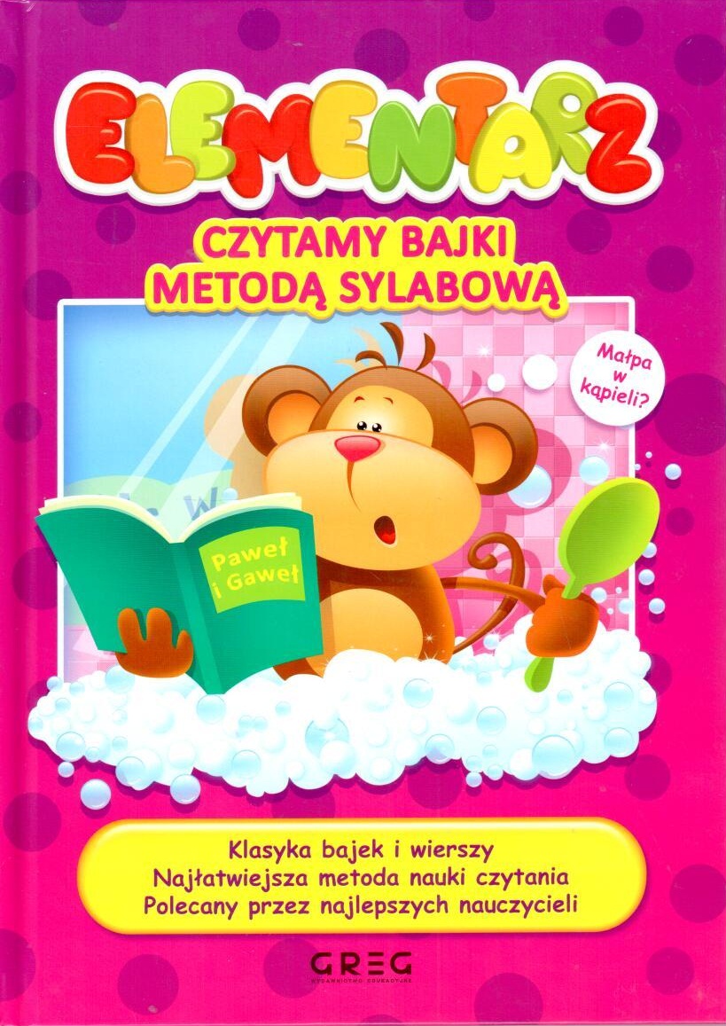 Elementarz - czytamy bajki metodą sylabową to książka warta polecenia każdemu dziecku chcącemu nauczyć się czytać. Zastosowano w niej metodę sylabową, która jest popularna od lat i niezwykle skuteczna. Pozwala ona nauczyć czytania już kilkuletnie maluchy. Dziecko poznaje literki, potem składa sylaby, by przejść do odczytywania wyrazów i całych zdań. Poziom trudności rośnie stopniowo, dzięki czemu nauka czytania jest szybka i bezproblemowa, a dziecko czyta płynnie i ze zrozumieniem. Dodatkową atrakcją są zamieszczone w drugiej części książki teksty do czytania - najbardziej znane bajki, klasyka polskiej literatury dziecięcej. Są tu więc bajki Krasickiego, Fredry, Mickiewicza, popularne wiersze Jachowicza czy Konopnickiej. Dziecko nie tylko nauczy się ładnie czytać, ale także będzie się doskonale bawić i pokocha literaturę!