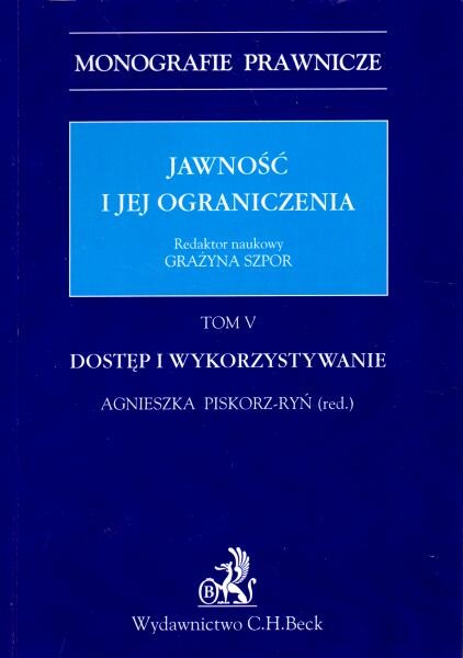 Tom V poświęcony jest dostępowi do publicznych zasobów informacyjnych oraz ich wykorzystaniu. Omówiono w nim takie kwestie jak: jawność działania administracji publicznej, ograniczenie dostępu do informacji publicznej, monitorowanie jawności przez organizacje pozarządowe, ponowne wykorzystanie informacji sektora publicznego zarówno w Polsce, jak i w wybranych krajach Unii Europejskiej, ograniczenie dostępu do informacji publicznej ze względu na ochronę inspekcji i kontroli prowadzonych przez władze publiczne oraz ze względu na ochronę bezpieczeństwa publicznego, nadużycia prawa do informacji publicznej.