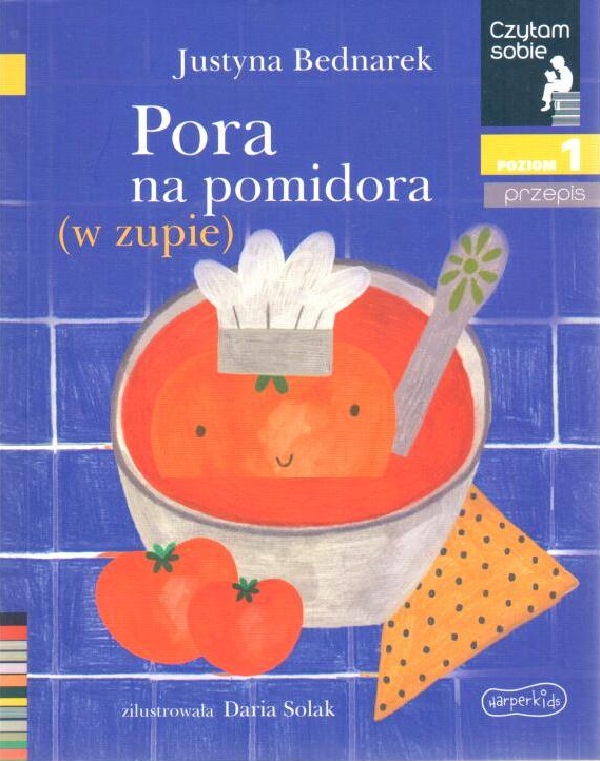 Nowy pomysł w serii „Czytam sobie”. Przepis, czyli nauka czytania i gotowania. Eufrozyna, bohaterka „Pora na pomidora (w zupie)”, zna się na gotowaniu jak mało kto. Wie, co warto dodać do zupy pomidorowej, by ta była najlepsza pod słońcem. Podpowie, ile czego odmierzyć i kiedy co wrzucić do garnka. I robi to tak, że mały czytelnik nie tylko zechce, jak najszybciej zabrać się do gotowania, ale też połknie książkę, stronę po stronie, zupełnie niechcący. To zasługa nie tylko fantastycznego tekstu Justyny Bednarek, ale też soczystych ilustracji Darii Solak, która – jak sama przyznaje - kocha pomidory (jeść i je malować).